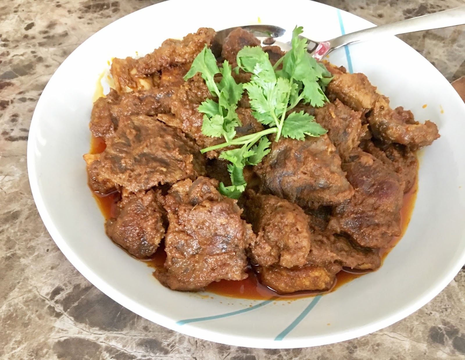Beef rendang is one of her specialties. She told me it required at least 14 different spices pounded in the mortar and pestle to make it! It definitely is not an everyday dish.